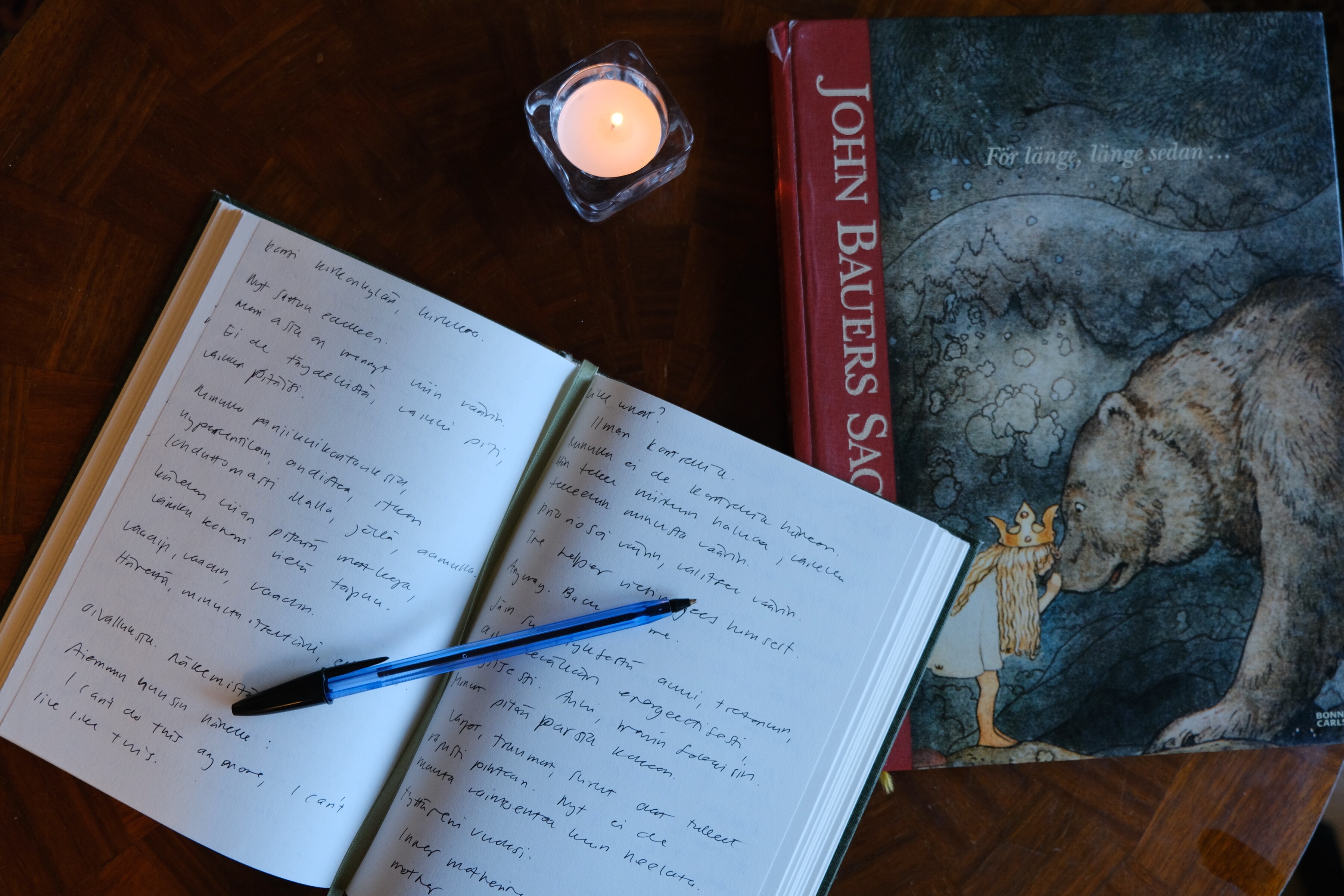 Du kan ta med dig din egen skrivbok, men papper och pennor finns också att tillgå.