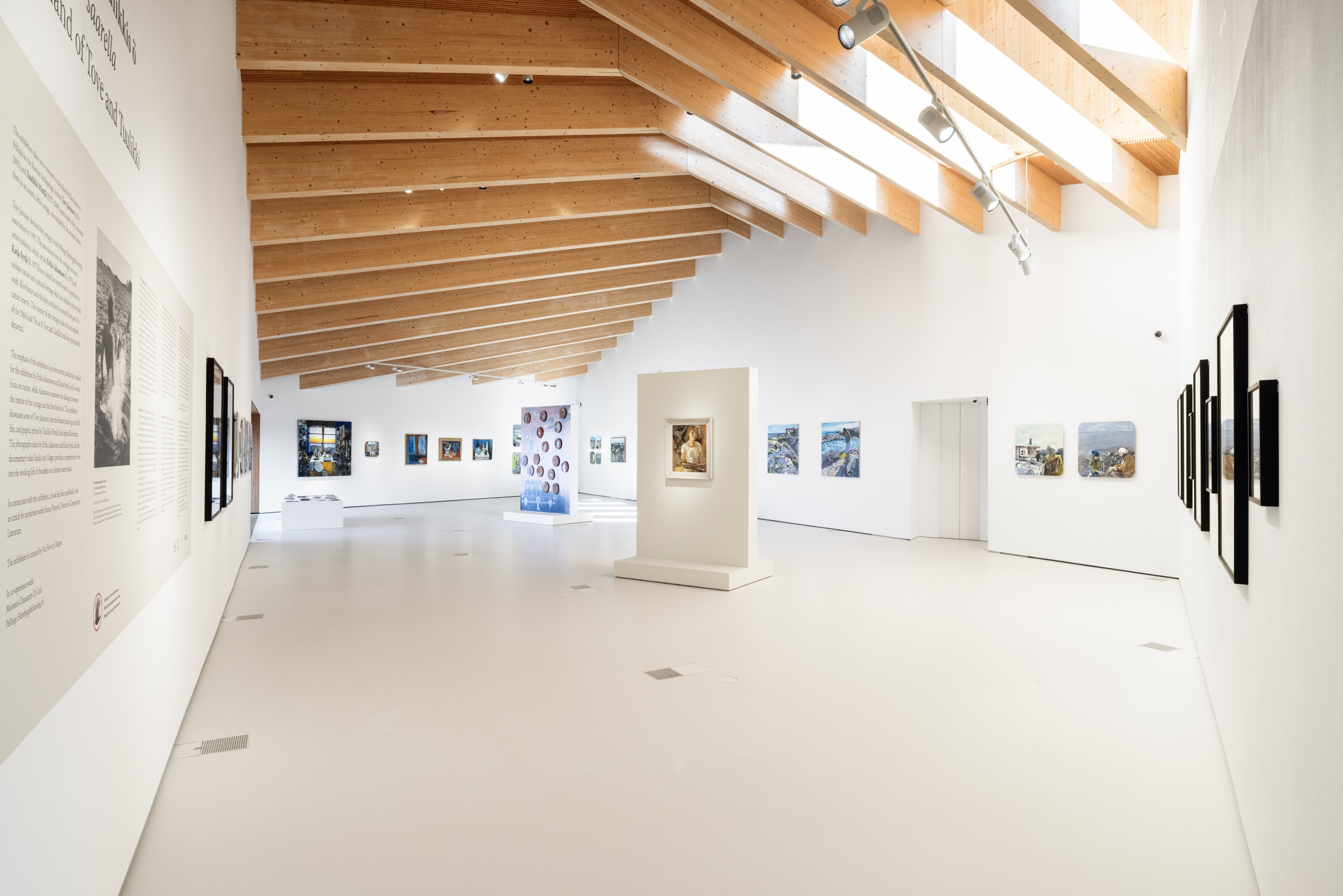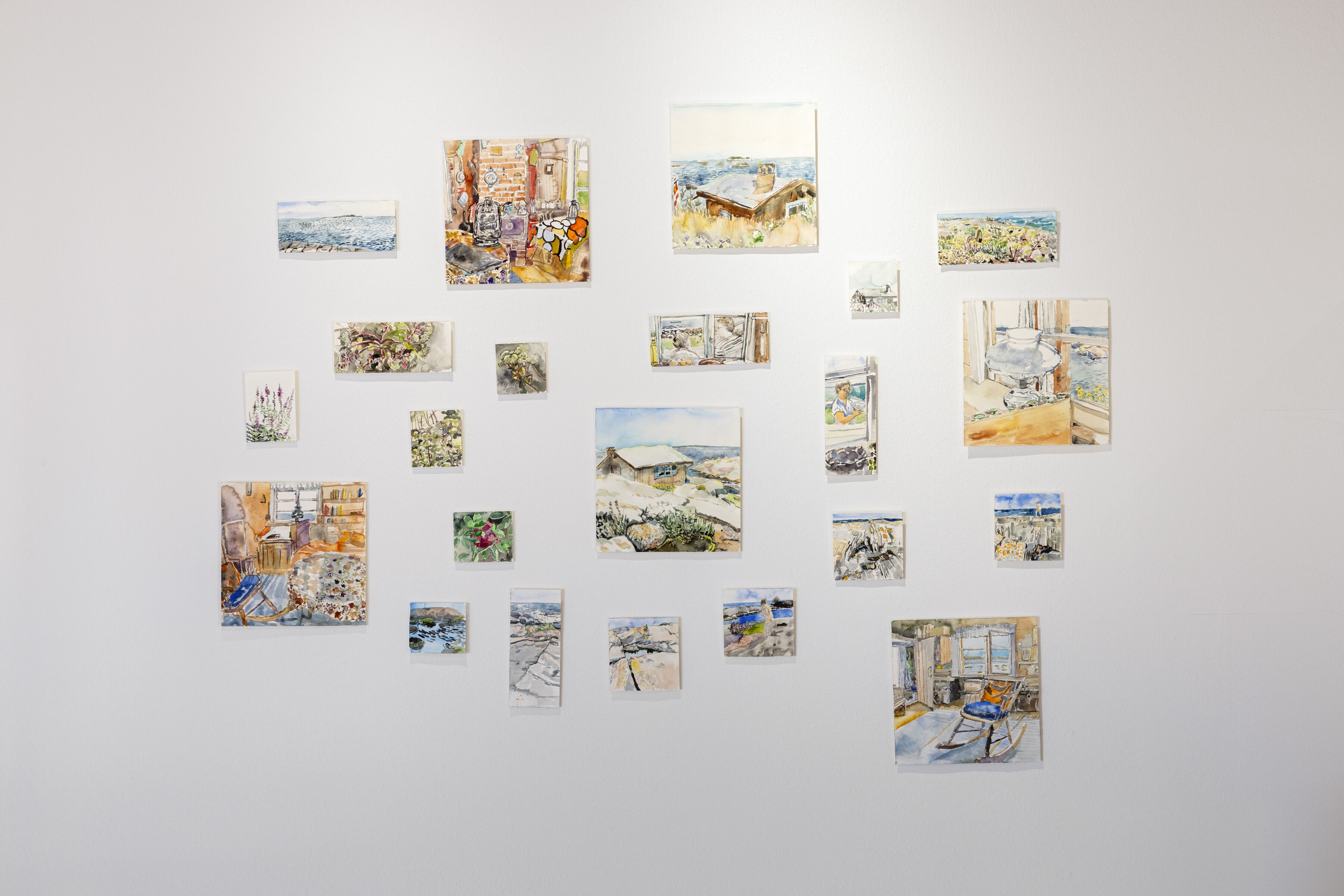 Utställningen fokuserar på den nya konstnärliga produktion som Erika Adamsson och Katja Syrjä förverkligat för utställningen. I Katja Syrjäs verk är fokus på naturen, medan Erika Adamsson fäster stor vikt vid dialogen mellan stugans interiör och de liv som utspelats där. På utställningen visas några av Tove Janssons få målningar med havstema och grafik av Tuulikki Pietilä som visar Klovharun. Foton tagna av Adamsson och Syrjä ger en mångsidig bild av konstnärernas liv på en avlägsen ö i yttre skärgården i Östersjön.